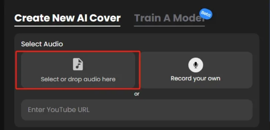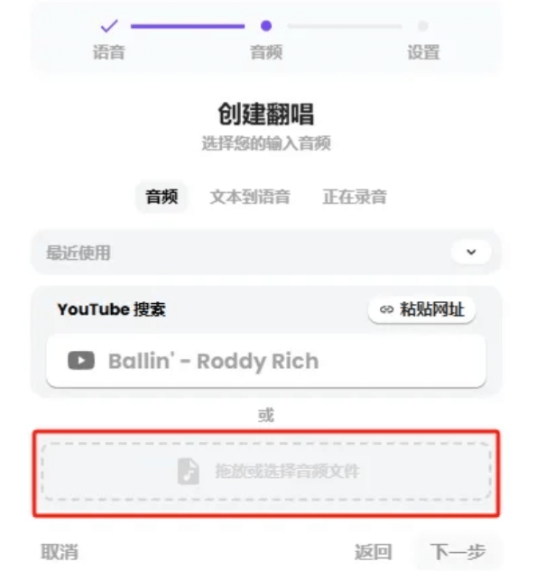 翻唱的音频,我们可以直接复制YouTube链接上传,也可以直接将歌曲文件拖放进来。