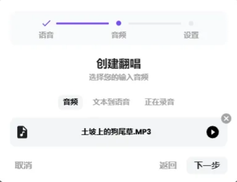 我们试一下用刚生成的懒羊羊模型翻唱,上传想要翻唱的歌曲。
