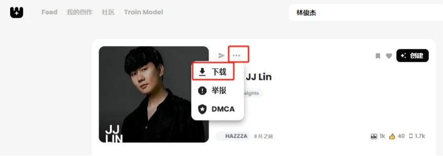 尝试搜了一下我的偶像,没想到他的语音模型居然有好几个,我选择了排名最靠前的这一个,点击右上角的创建,新建一个翻唱任务。
