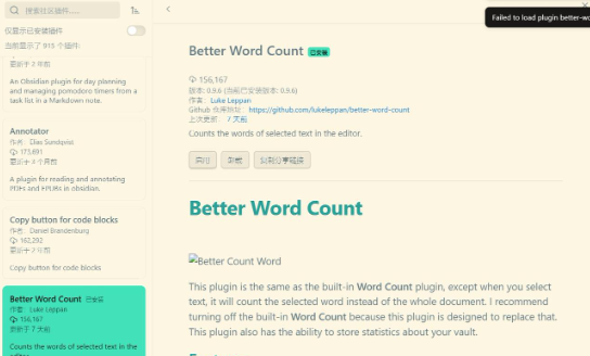 安装obsidian插件后,点击启用,出现Failed to load plugin XXX